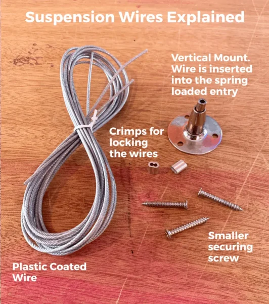 The hanging wires are great for shopfront installations or installing suspended from above.